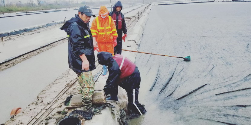 不僅僅是礦鹽班組,在海濱鈣液灘,老黨員、領(lǐng)灘手伏廣銀、董良平一直堅(jiān)守在崗,他們不僅干好自己的本職工作,在其他領(lǐng)灘手被居家管控的時(shí)刻,他們來到其他單元幫助走水以及其他日常工作,經(jīng)常一干就是12個(gè)小時(shí);在鈣液原料水儲(chǔ)備池,龔成春每天是按時(shí)按點(diǎn)到達(dá)灘地,進(jìn)行灘地巡視,做好巡視登記,沒有因?yàn)橐咔橛绊懚⒄`一天,遇上暴風(fēng)雨等惡劣天氣,他就住在值班室,每天晚上要加巡一次,保證僅有的原料水能得到最大化的利用;在鈣液銷售點(diǎn),程輝、徐松保響應(yīng)疫情防控應(yīng)急預(yù)案,備齊醫(yī)用口罩,酒精,消毒液等防疫物資,每天對(duì)前來的鈣液運(yùn)輸車進(jìn)行消毒,對(duì)司機(jī)進(jìn)行體溫測(cè)量、“三碼”登記,確保鈣液銷售安全有序。