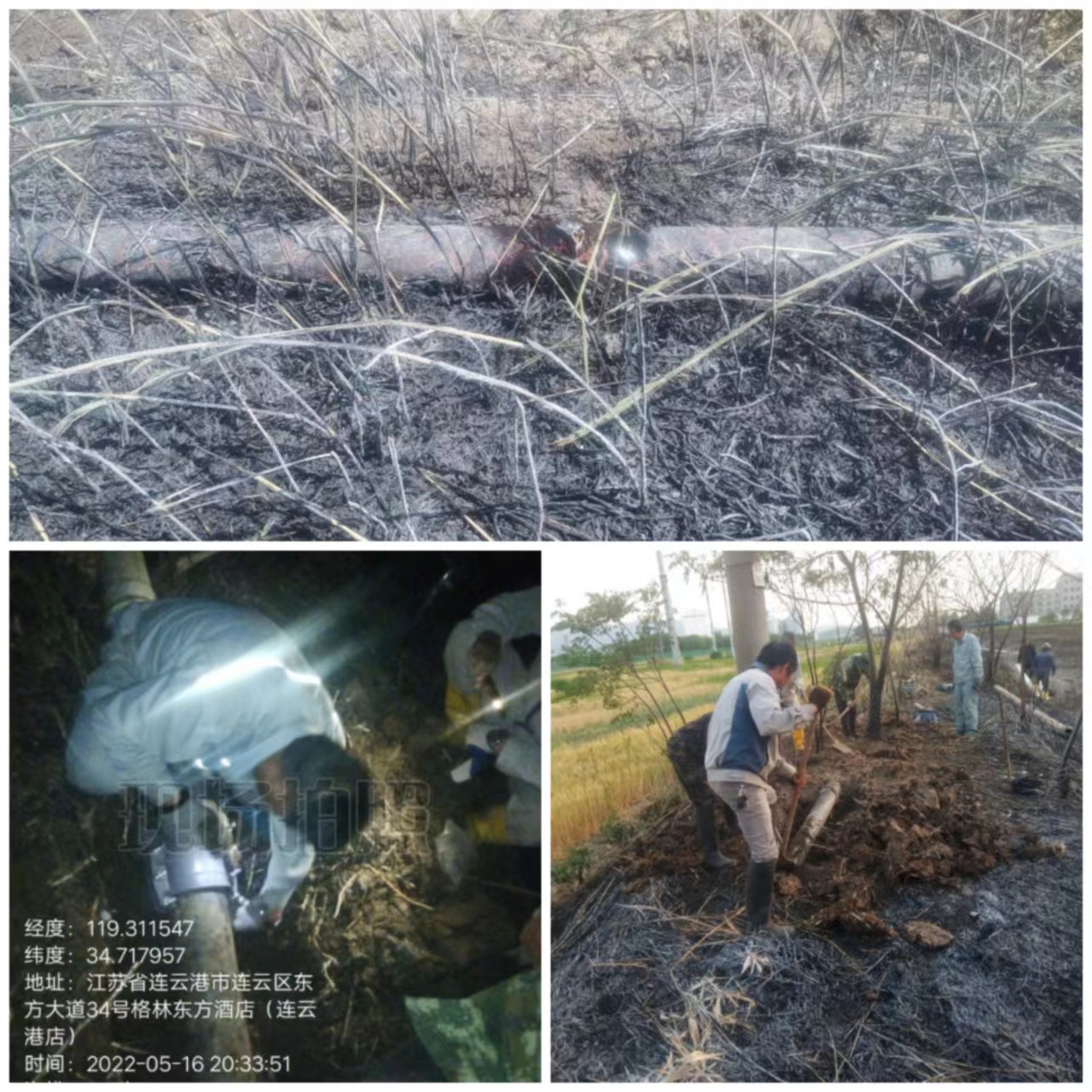 5月16日中午12點(diǎn)半左右,東方大道與新光路交叉處蘆葦蕩突發(fā)大火,海州灣公司近300米礦鹵管道正埋于此處。大火發(fā)生后,管道突發(fā)性爆裂,導(dǎo)致昌圩班組不能正常灌池,公司立即組織十余名搶修人員,迅速集結(jié)奔赴現(xiàn)場(chǎng),火速開(kāi)展搶修工作。