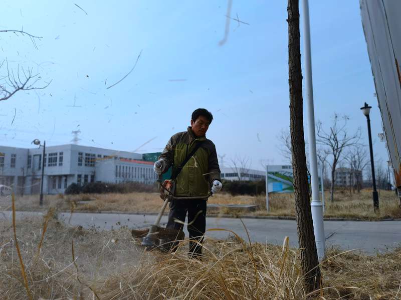 經(jīng)驗老道的“除草匠人”朱春華一馬當(dāng)先,一人成軍,小小雜草在揮舞的打草機下“灰飛煙滅”