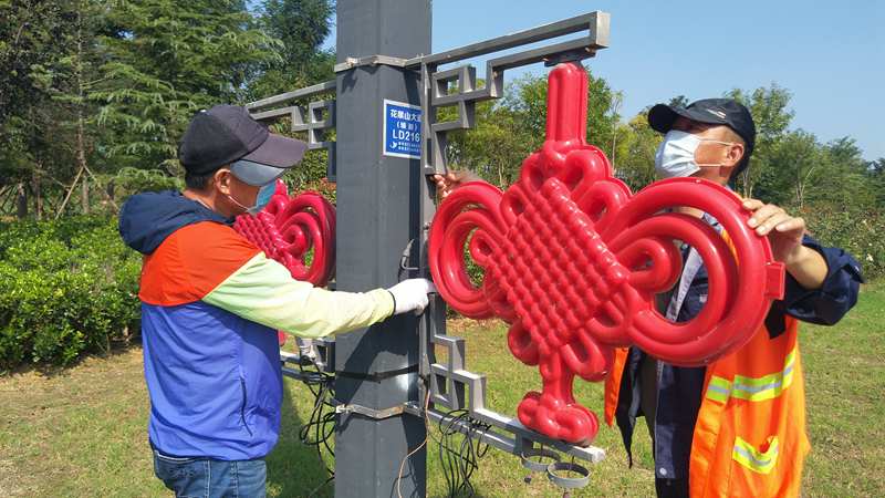 和往年一樣,今年“中秋”“國(guó)慶”兩節(jié)前夕,資源管理分公司組織公司精兵強(qiáng)將加入到翔立分公司兩節(jié)前道路亮化景觀(guān)突擊行動(dòng)中,該公司這些志愿者隊(duì)員有的維修破損的中國(guó)結(jié)紅燈籠等亮化燈,有些負(fù)責(zé)安裝、運(yùn)輸,為在節(jié)前加快完成安裝任務(wù)貢獻(xiàn)了自己的力量。圖為該公司志愿者在安裝自貿(mào)區(qū)主干道上的“中國(guó)結(jié)”亮化路燈。