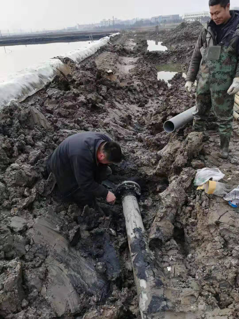 該項工程是為了配合開發(fā)區(qū)新建道路正常施工,和保證大浦工區(qū)原鹽生產(chǎn)不受影響,由翔立分公司承接的猴嘴十二路下穿DN315和DN160兩根PE管道穿越工程。因規(guī)劃的穿越點處于水塘邊,現(xiàn)場施工環(huán)境較為困難。翔立公司參與施工人員想方設法克服困難,穿越施工前采取發(fā)電機水泵抽排水、填土夯實頂管機作業(yè)場地、克服淤泥深等障礙,保證施工進度的正常進行。