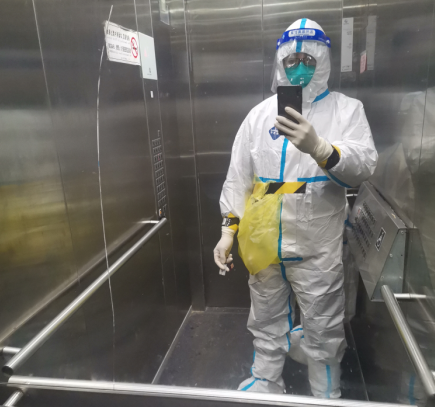 ? ? 14日? 雷聲驟響,大雨突降,集合時(shí)間待定,安心的吃了點(diǎn)早飯,依舊不敢吃多。9點(diǎn)開始,第九輪。我出狀況了,剛采一會(huì)口罩松了,眼鏡、面屏上全是霧氣,什么也看不見,沒法操作。為了不影響進(jìn)度我被換下,原定入戶采集的志愿者頂上。防護(hù)服脫了就浪費(fèi)了,我就等入戶醫(yī)生到達(dá),去上門采集。掃樓和定點(diǎn)完全不一樣,悶、熱,大白服都濕透了。13.40結(jié)束,全身“噴殺”消毒,脫裝備,再噴消。飯后沒安排我工作,做了核酸后在小區(qū)里坐了幾個(gè)小時(shí),心里始終不能平靜,害怕,不安占據(jù)了我的內(nèi)心,即使做了防護(hù)措施但是還是有很大風(fēng)險(xiǎn),我也有家人,所以我害怕,真的害怕!“沒事的”“沒事”最后還是妻子開解了我。