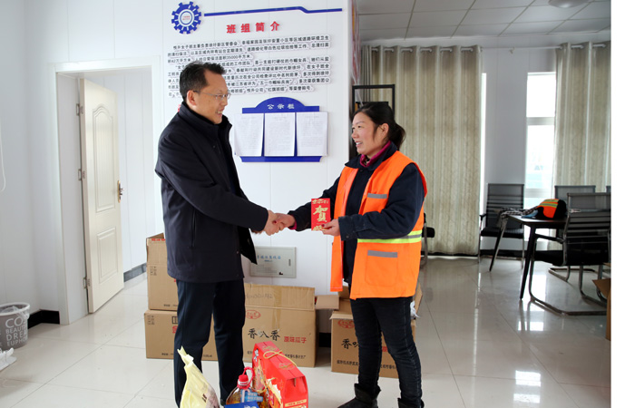 ? ? ? ?春節(jié)前夕,投資公司工會主席劉剛,副總經(jīng)理?xiàng)钍孛鳌紘咴L慰問勞動模范,向他們傳遞組織的關(guān)懷與溫暖,并為他們送去慰問金、慰問品和節(jié)日祝福。